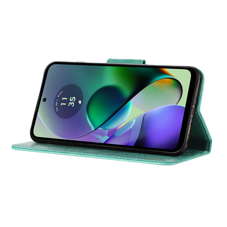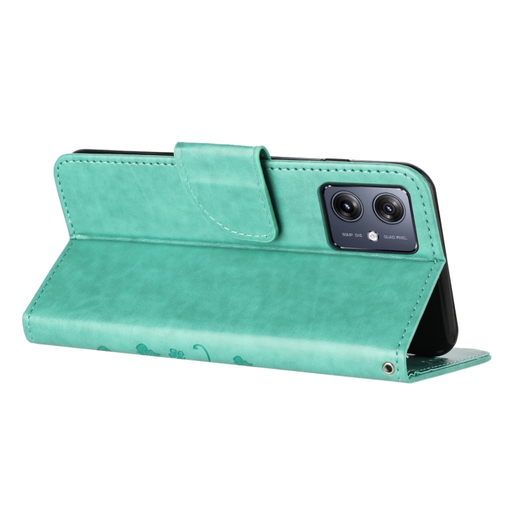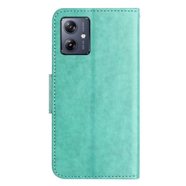Funda de Cuero con Tapa para Motorola Moto G55 con Diseño de Flores y Mariposas (Verde)