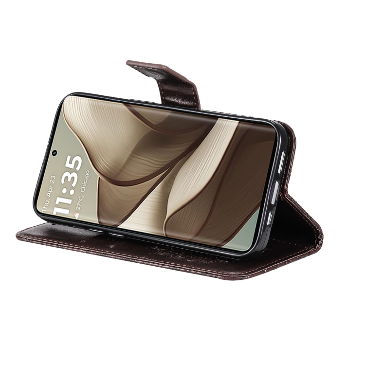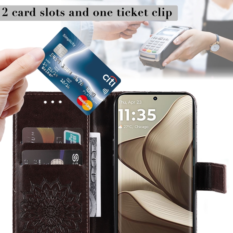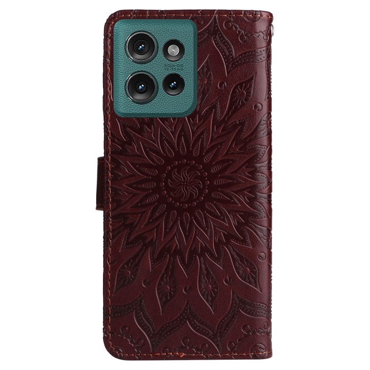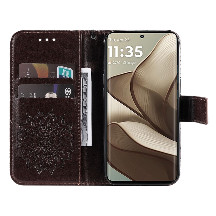 Funda de Cuero con Tapa y Diseño de Girasol en Relieve para Motorola Edge 50 5G (Marrón)