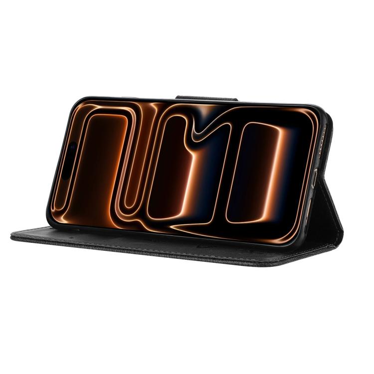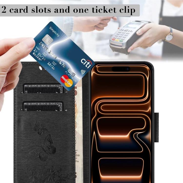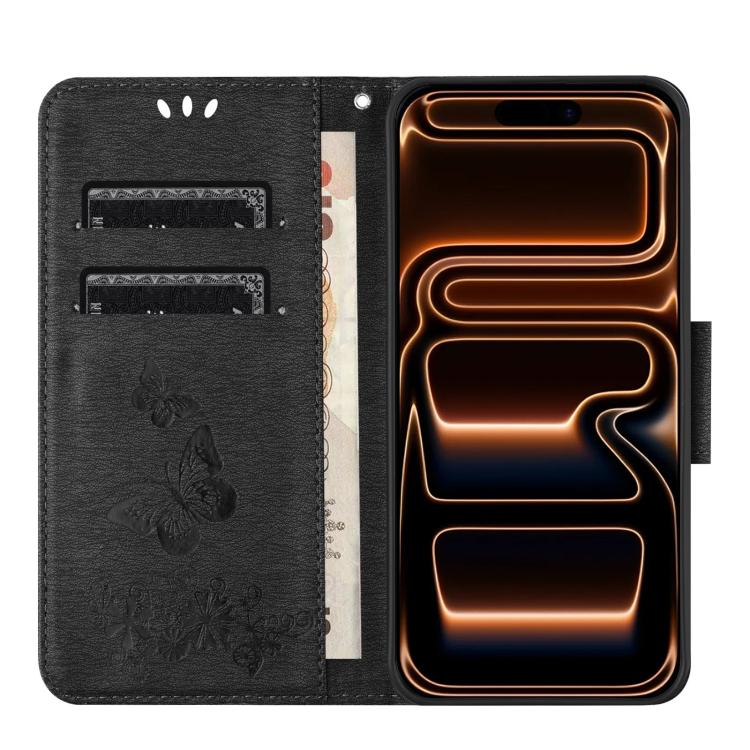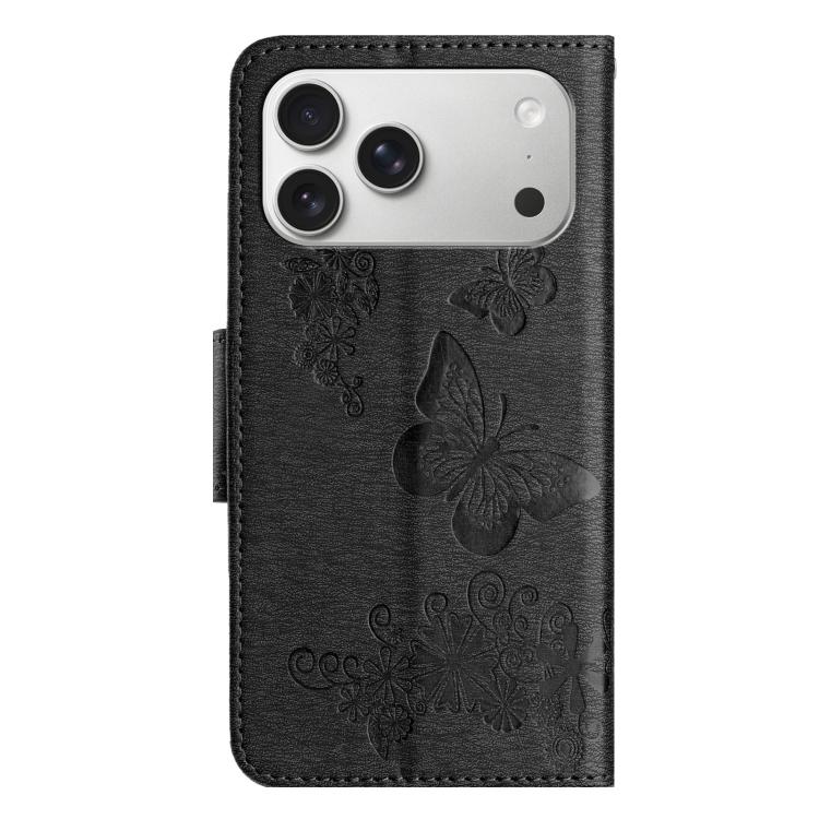 Funda de cuero con tapa y diseño de mariposa para iPhone 17 Pro (negra)