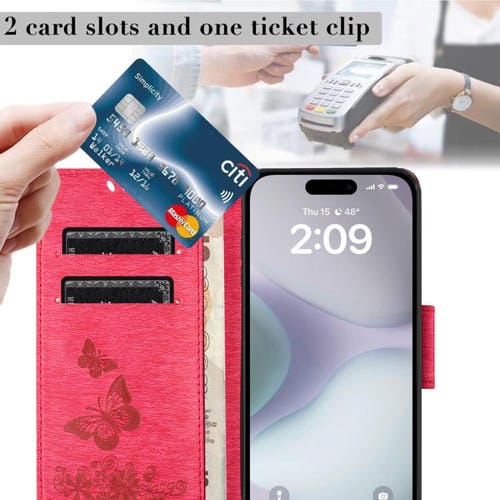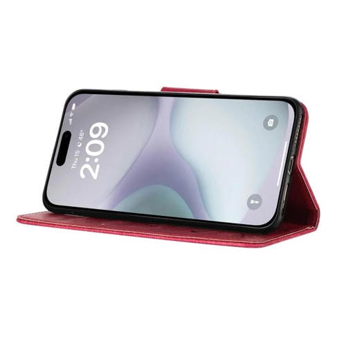 Funda de cuero con tapa y diseño de mariposa para iPhone 17 (roja)