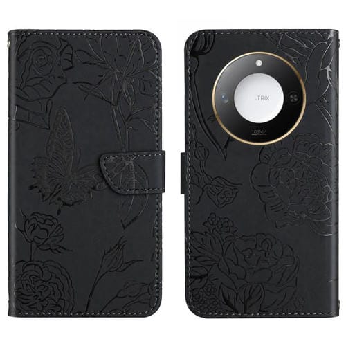 Funda de Cuero con Tapa y Mariposas en Relieve para Honor X9C Smart HT03 (Negro)