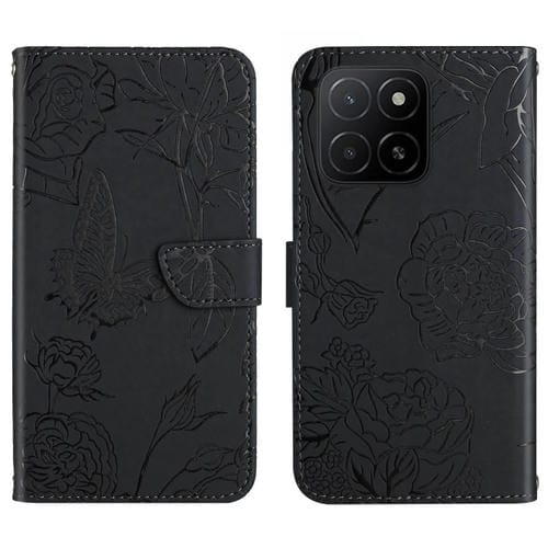 Funda de Cuero con Tapa y Mariposas En Relieve para Honor X5B 4G / X5B Plus 4G Ht03 (Negro)