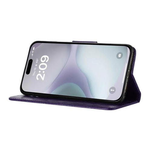 Funda de cuero con tapa y diseño de mariposas y flores para iPhone 17 (morado oscuro)