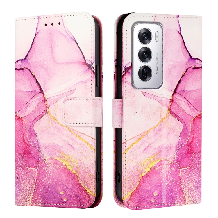 Funda de Cuero con Tapa y Diseño de Mármol para Oppo Reno12 Global Pt003 (Rosa, Morado y Dorado)