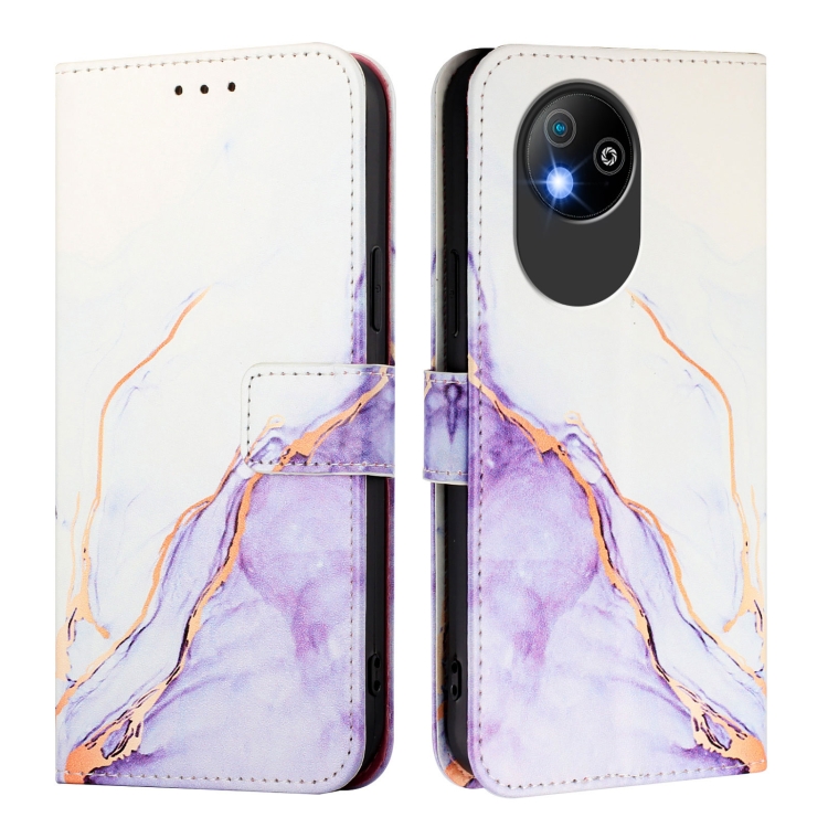 Funda de Cuero con Tapa para ZTE Blade A35 Lite A35 Core Pt003 (Blanco y Morado)