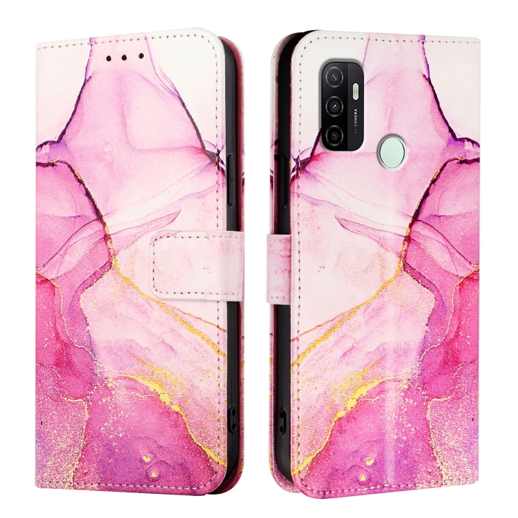 Funda de Cuero con Tapa y Diseño de Mármol Pt003 para Oppo A32 2020 4G/A53 2020 4G (Rosa, Morado y Dorado)