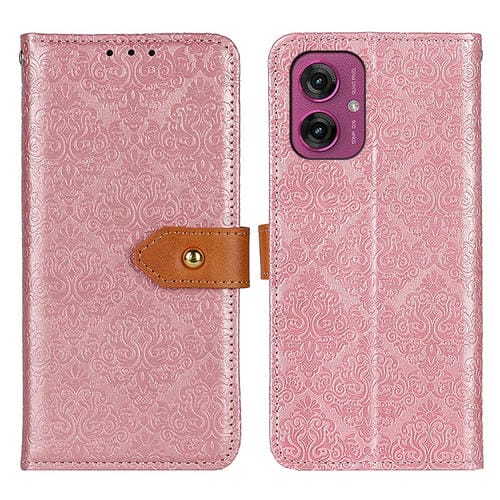 Funda de Cuero con Tapa y Diseño Floral para Motorola Moto G55 5G (Rosa)