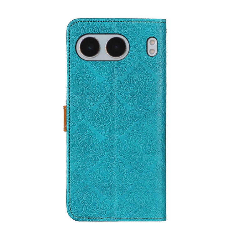 Funda de Cuero con Tapa y Diseño Floral en Relieve para OnePlus Nord 4 (Azul)