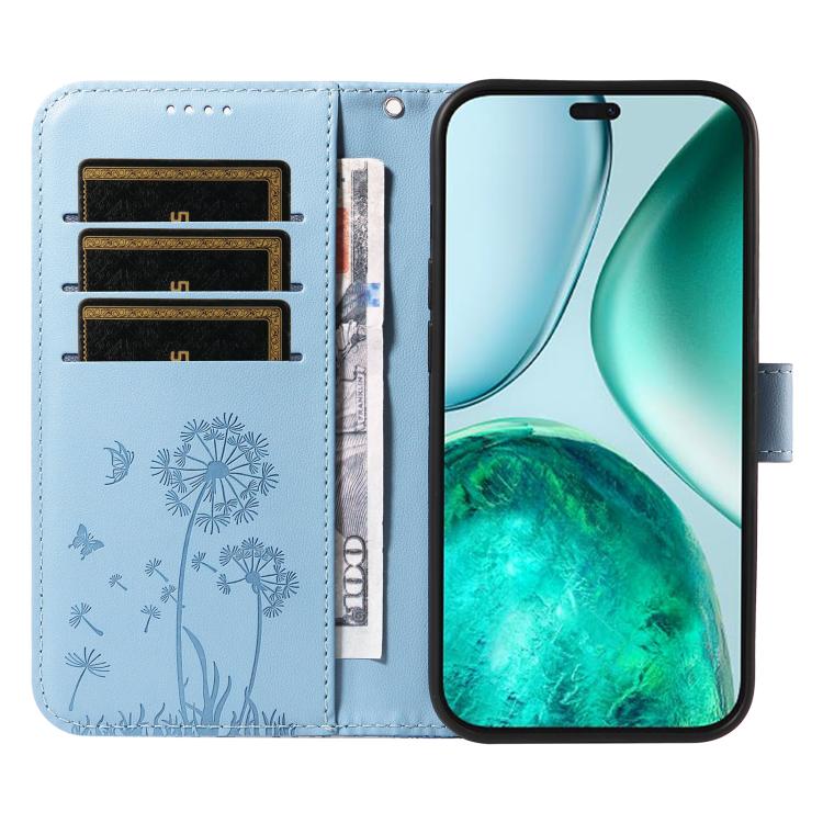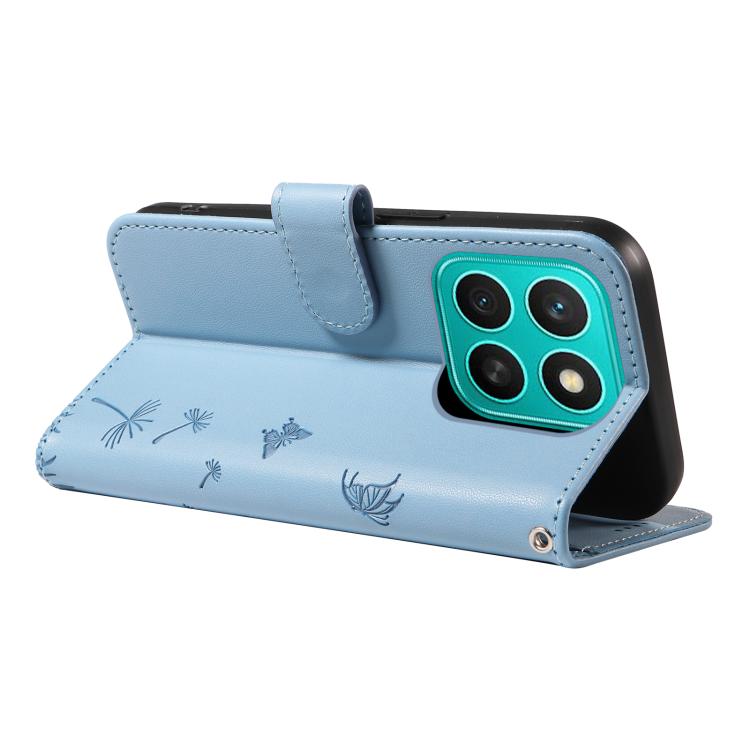 Funda de Cuero con Tapa y Estampado Diente de León para Honor X8C 4G (Azul Cielo)
