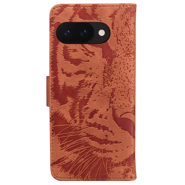 Funda de Cuero con Tapa y Estampado de Tigre para Google Pixel 9A (Marrón)