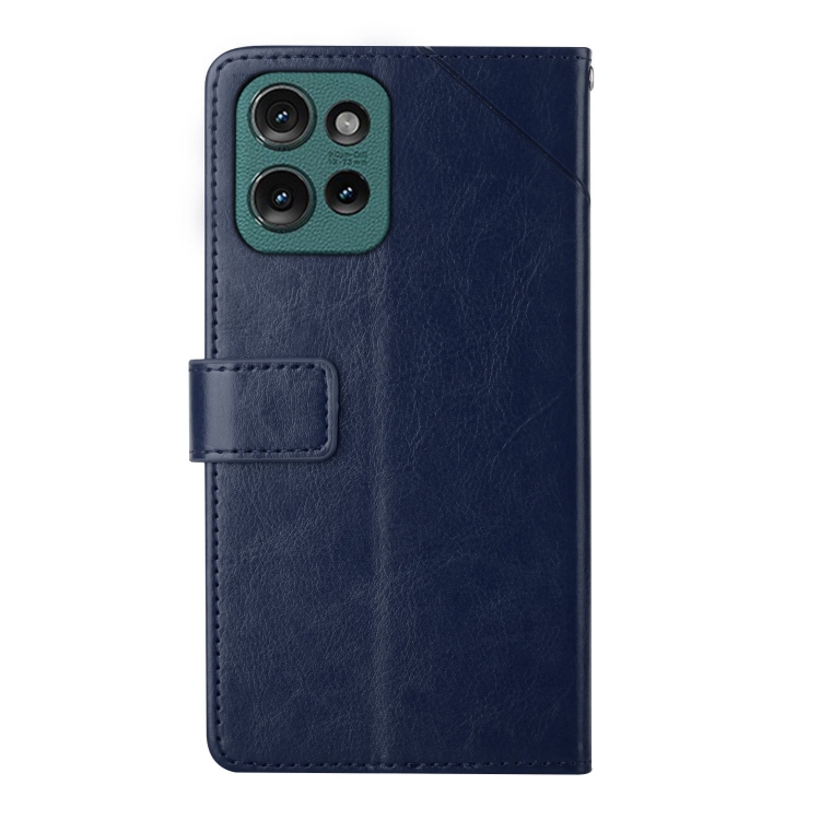 Funda de Cuero con Tapa y Patrón en Forma de Y para Motorola Moto G 5G 2025 Ht01 (Azul)