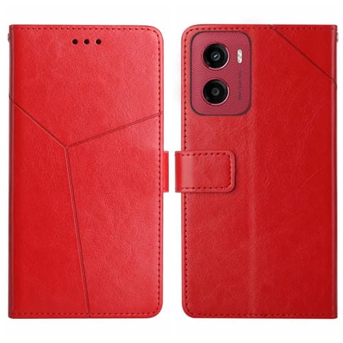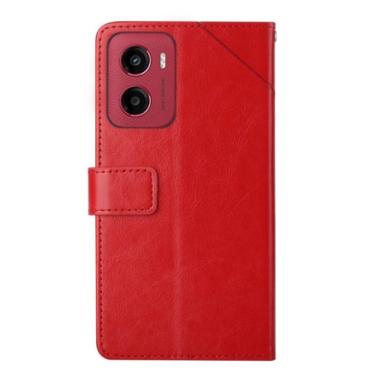 Funda de Cuero con Tapa y Patrón en Forma de Y para Motorola Moto G05 Ht01 (Rojo)