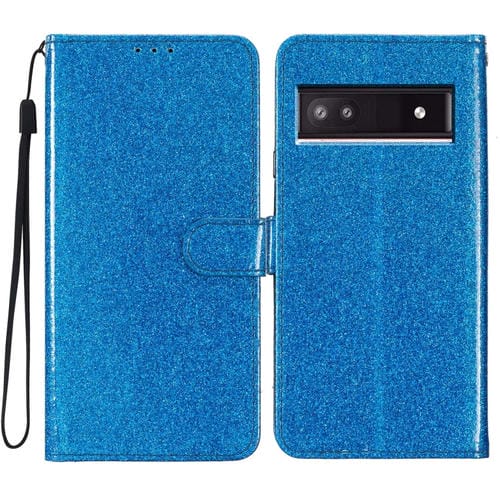 Funda de Cuero con Tapa y Purpurina en Polvo para Google Pixel 9A (Azul)