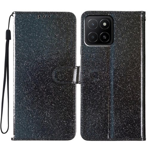 Funda de Cuero con Tapa y Purpurina para Honor X5B 4G (Negra)