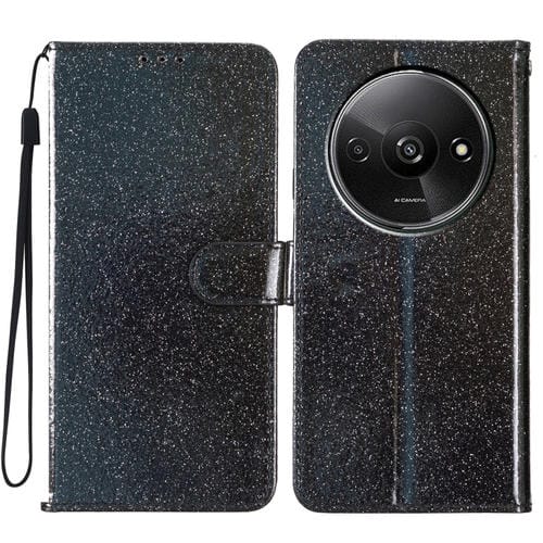 Funda de Cuero con Tapa y Purpurina para Redmi A3 (Negra)