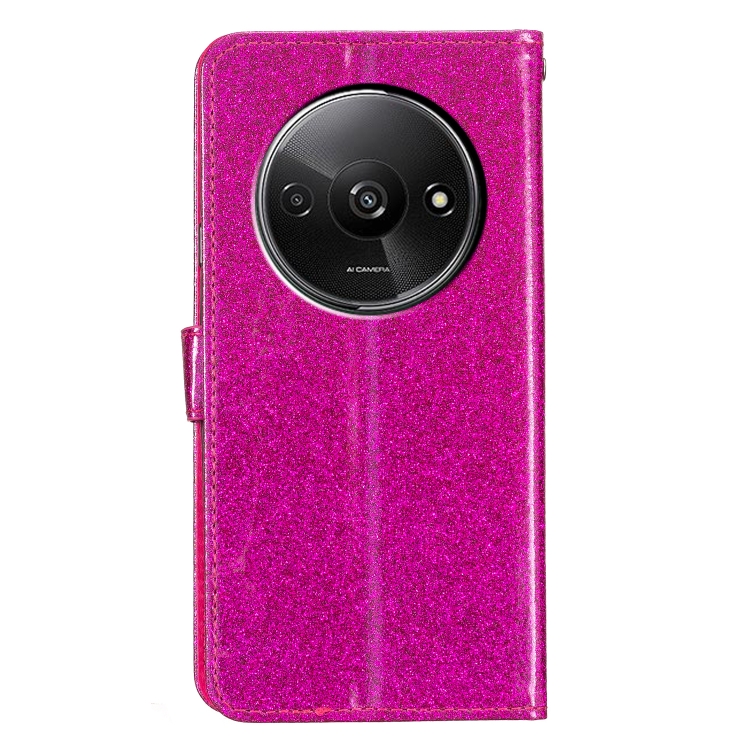Funda de Cuero con Tapa y Purpurina para Redmi A3 (Rosa y Rojo)