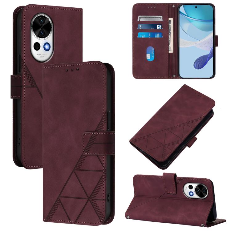 Funda de Cuero con Tapa y Relieve 3D para Huawei Nova 13/Nova 12 (Rojo Vino)