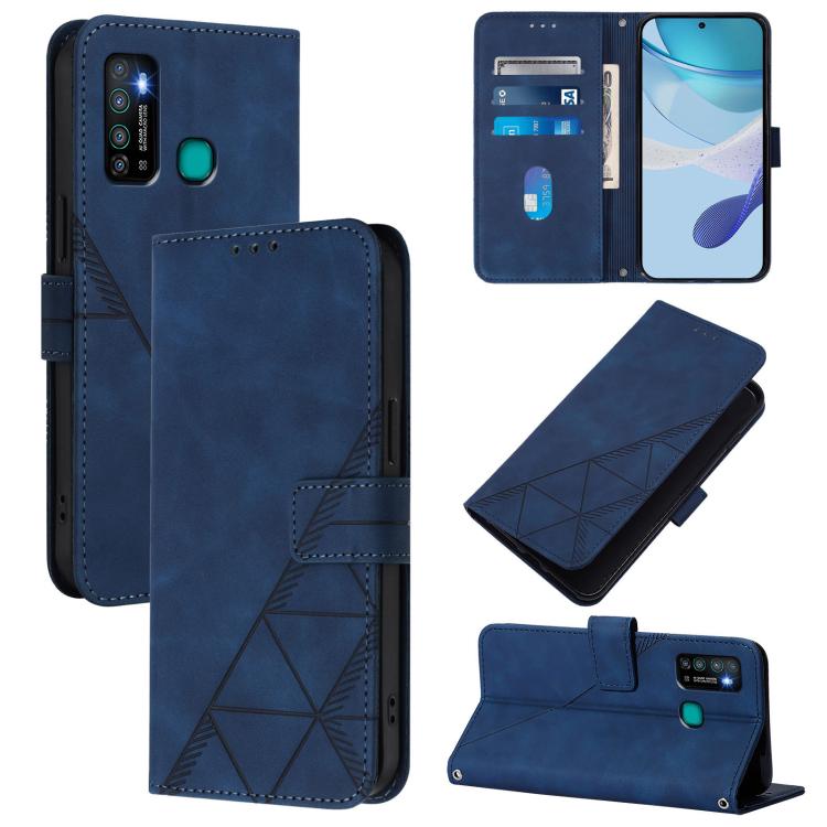 Funda de Cuero con Tapa y Relieve 3D para Teléfono Infinix Hot 9 Pro/9 Crossbody (Azul)