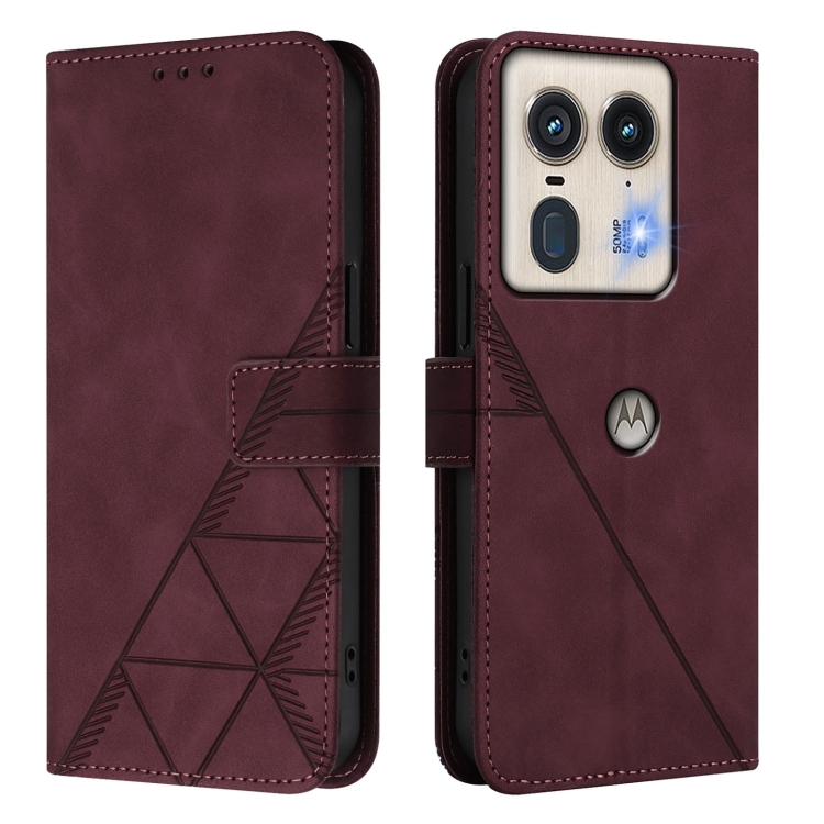 Funda de Cuero con Tapa y Relieve 3D para Motorola Edge 50 5G (Rojo Vino)
