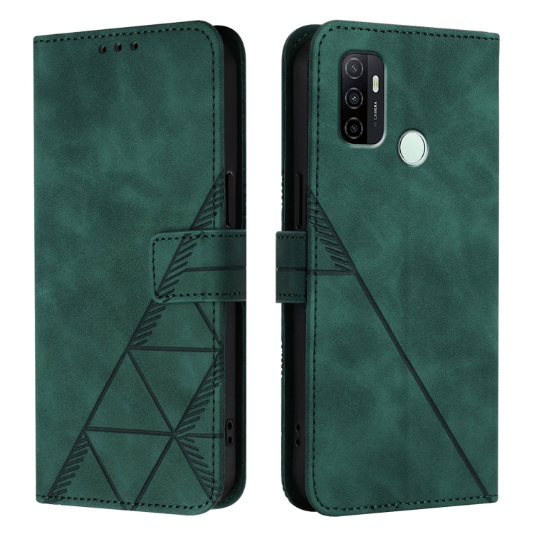 Funda de Cuero con Tapa y Relieve 3D para Teléfono Oppo A53S 4G/A33 2020 4G (Verde Oscuro)
