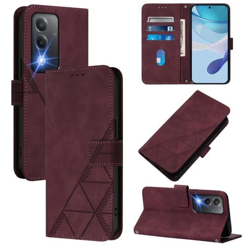Funda de Cuero con Tapa y Relieve 3D para Oppo A80 5G Eu (Rojo Vino)