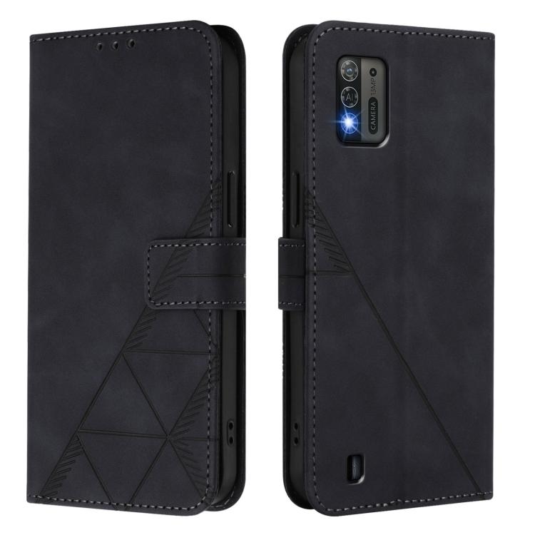 Funda de cuero con tapa y relieve 3D para ZTE Blade A52 Lite (negra)