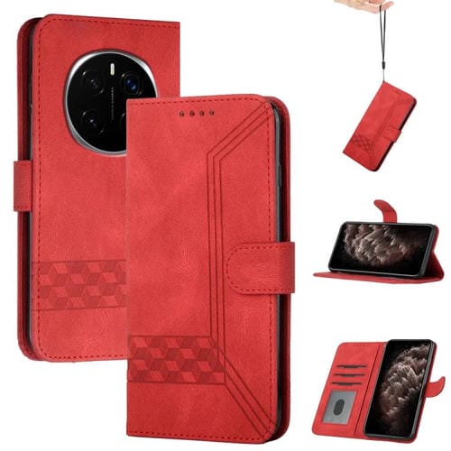 Funda de Cuero con Tapa y Tacto Cúbico para Honor Magic7 Pro (Rojo)