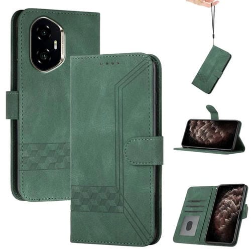 Funda de Cuero con Tapa y Tacto de Piel Cúbica para Honor 300 (Verde)
