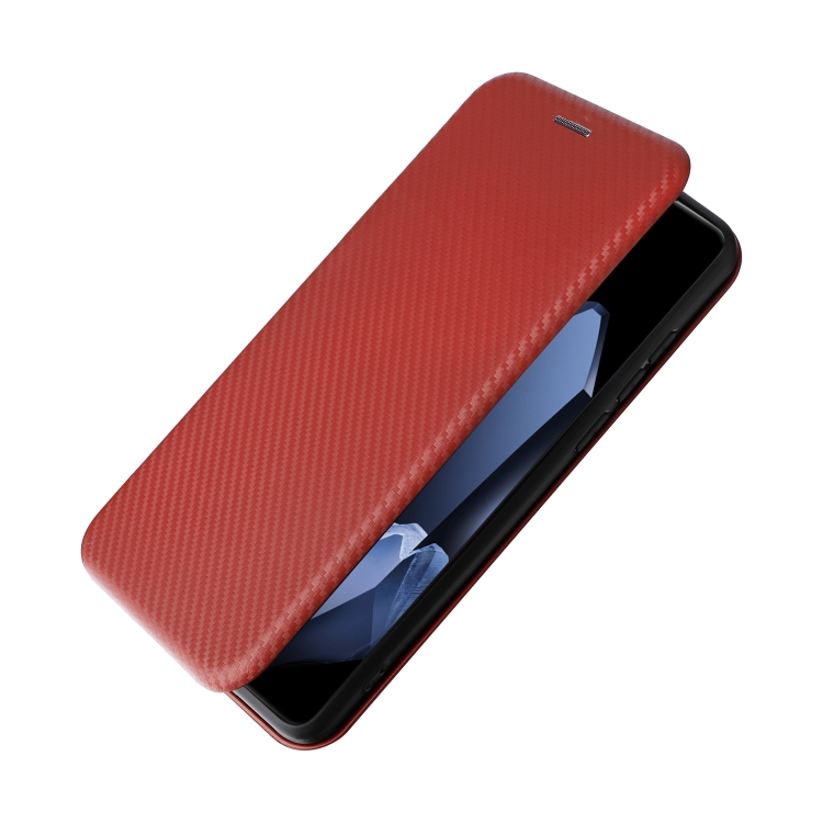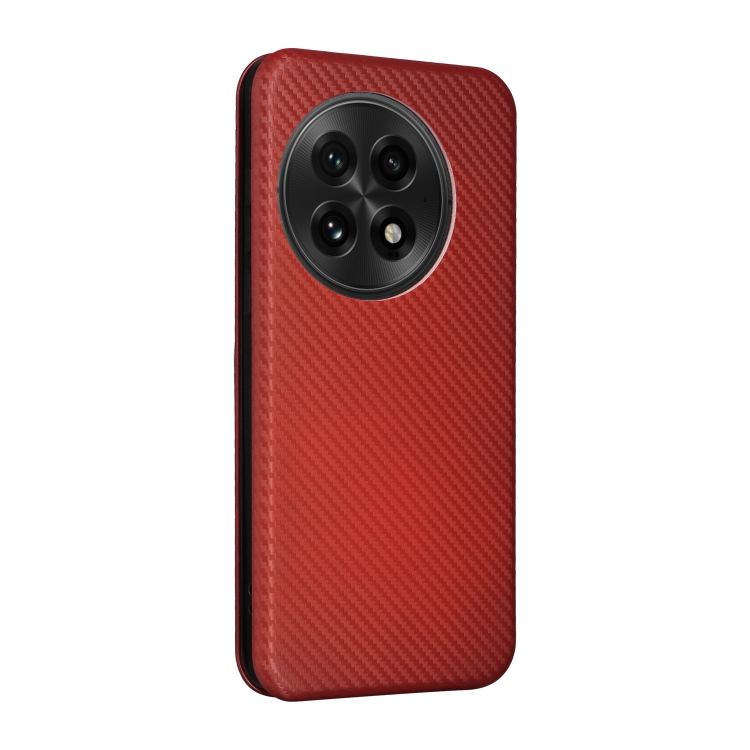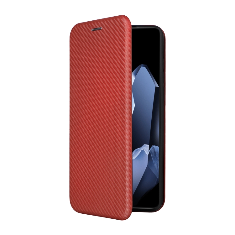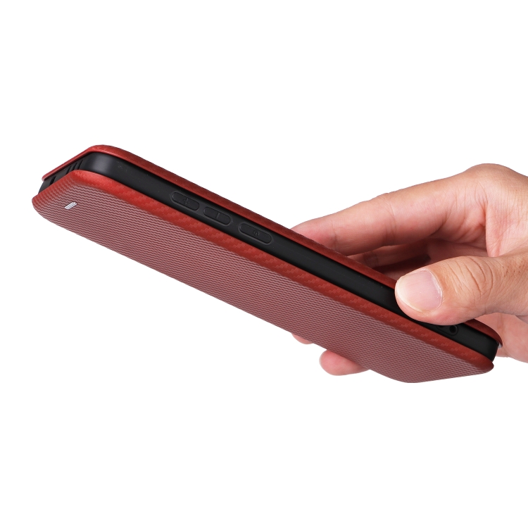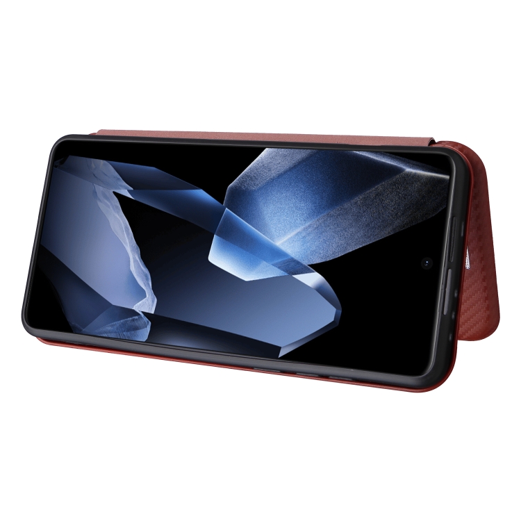 Funda de Cuero con Tapa y Textura de Fibra de Carbono para OnePlus 13 (Marrón)