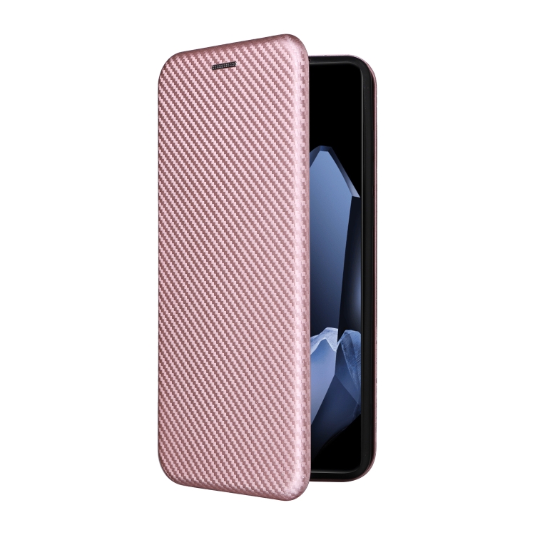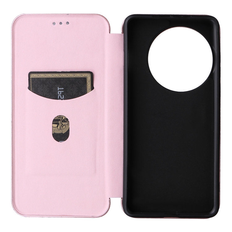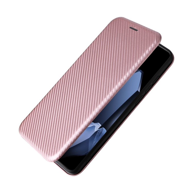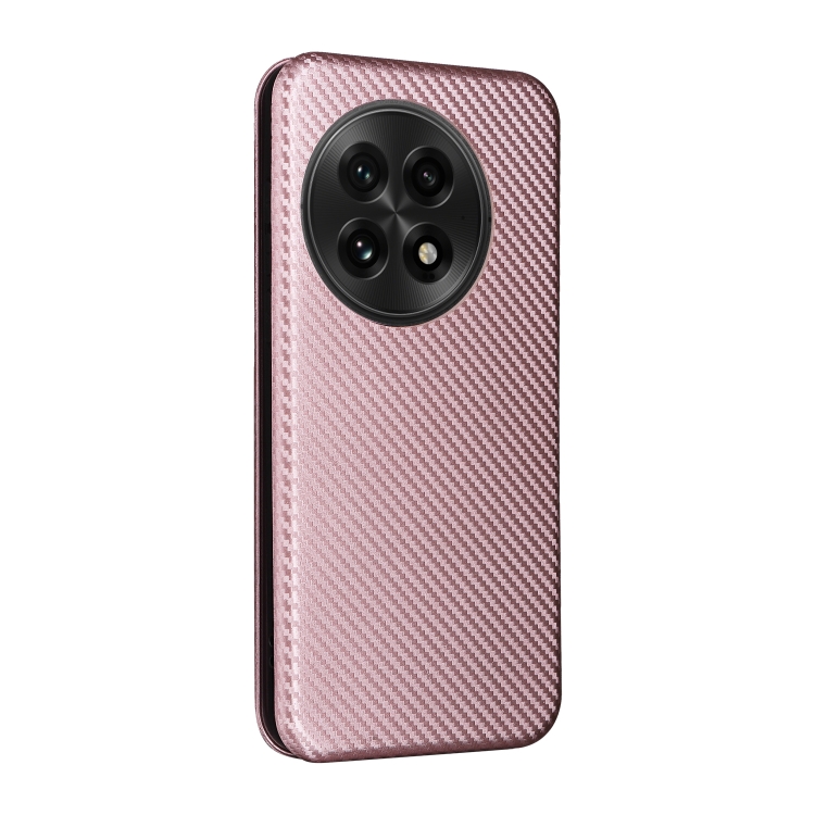 Funda de Cuero con Tapa y Textura de Fibra de Carbono para OnePlus 13 (Rosa)