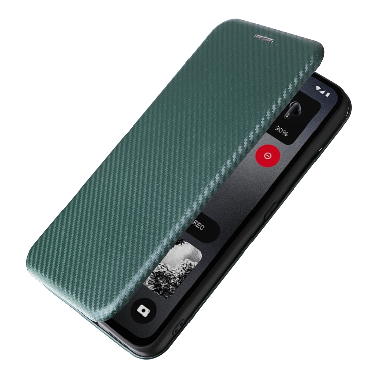 Funda de Cuero con Tapa y Fibra de Carbono para cmf Phone 1 (Verde)
