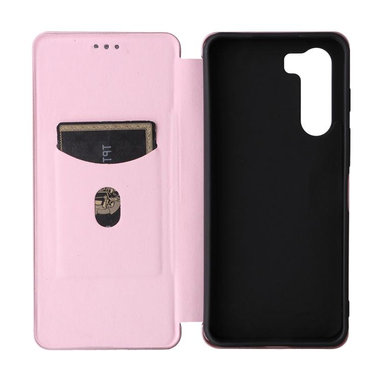 Funda de Cuero con Tapa y Fibra de Carbono para ZTE Nubia S 5G A403Zt (Rosa)