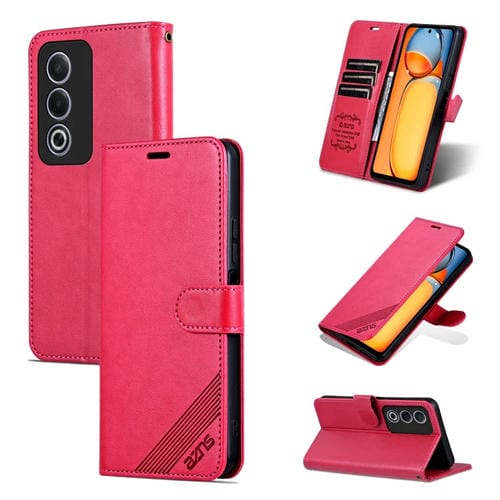 Funda de Piel de Oveja con Tapa Azns para Oppo A3 Pro 5G Global (Roja)