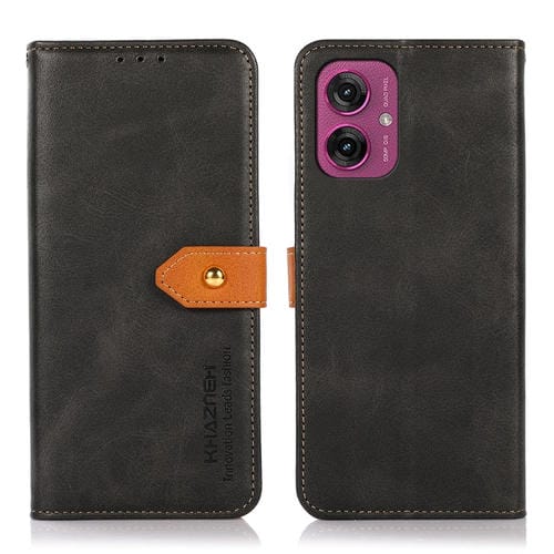 Funda de Cuero Khazneh para Motorola Moto G55 5G con Tapa y Textura de Piel de Vaca (Negro)