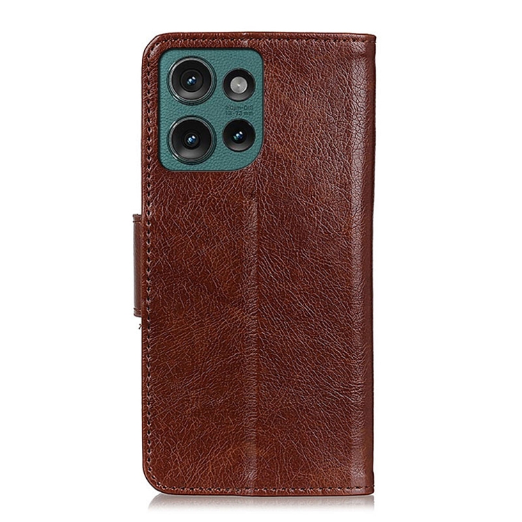Funda de Cuero con Tapa y Textura Nappa para Motorola Edge 50 5G (Marrón)