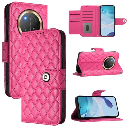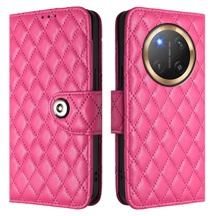 Funda de Cuero con Tapa y Cordón para Honor X9C 5G con Textura Rómbica (Rosa Rojo)