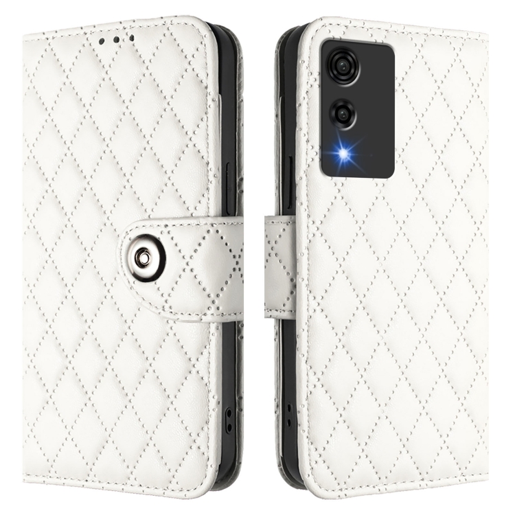 Funda de Cuero con Tapa y Textura Rombal para Cubot A10 con Cordón (Blanco)