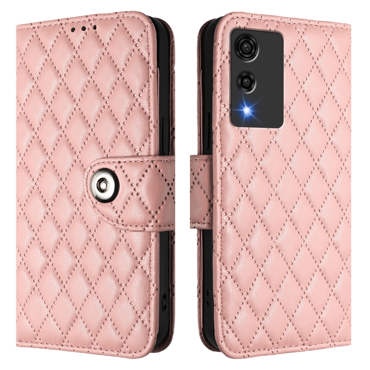 Funda de Cuero para Cubot A10 con Tapa Textura Rombal y Cordón (Rosa Coral)