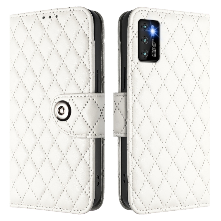 Funda de Cuero con Tapa Textura Rombal para Cubot P50 con Cordón (Blanca)