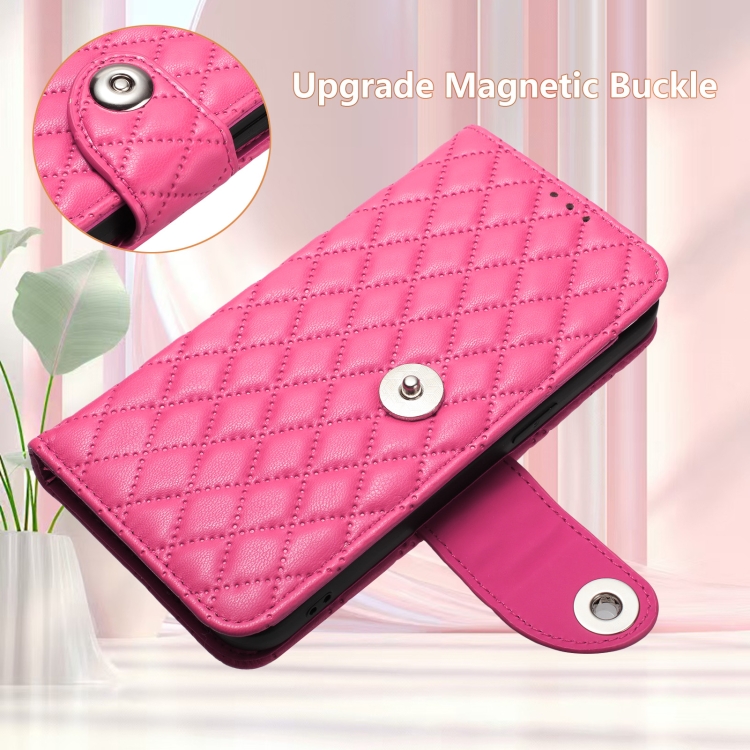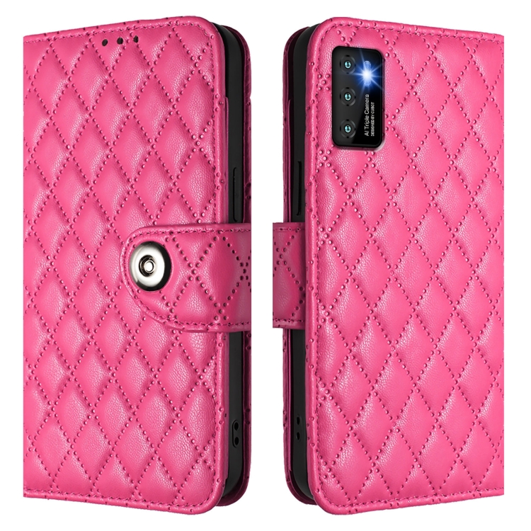 Funda de Cuero con Tapa y Textura Rombal para Cubot P50 con Cordón (Rosa y Rojo)