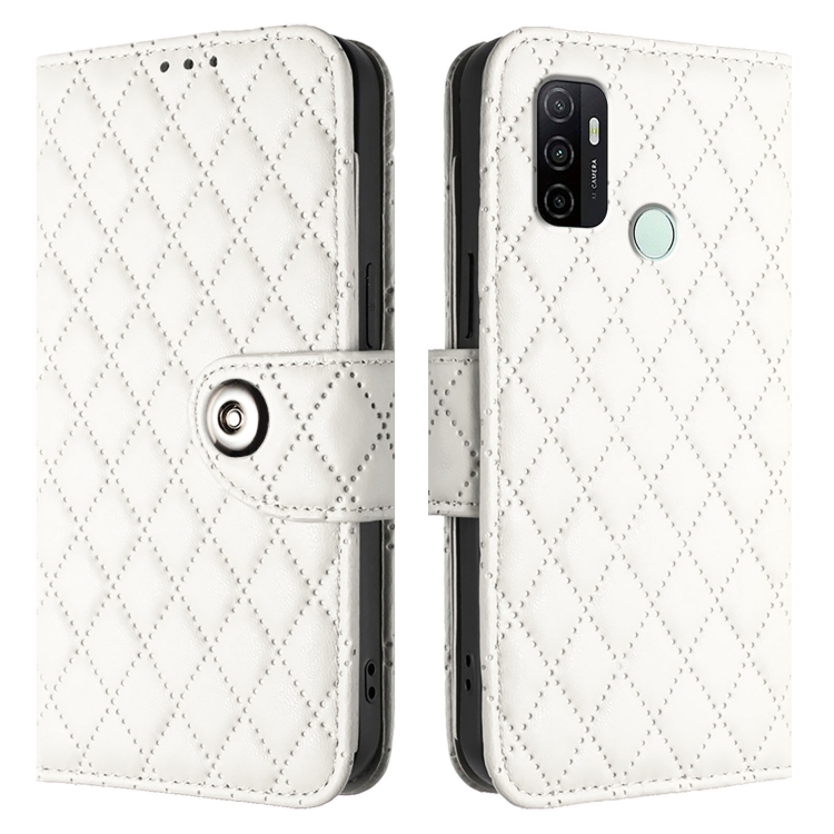 Funda de Cuero con Tapa y Textura Rombal para Oppo A11S 4G con Cordón (Blanco)