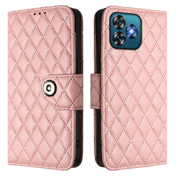Funda de Cuero con Tapa y Textura Rombal para Oukitel C53 con Cordón (Rosa Coral)