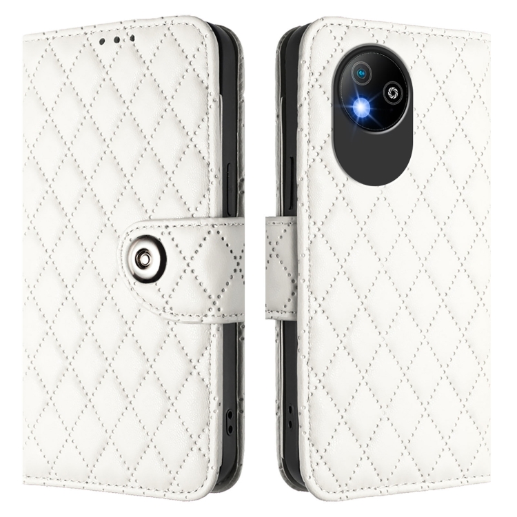 Funda de Cuero con Tapa y Textura Rombal para ZTE Blade A35 Lite con Cordón (Blanco)