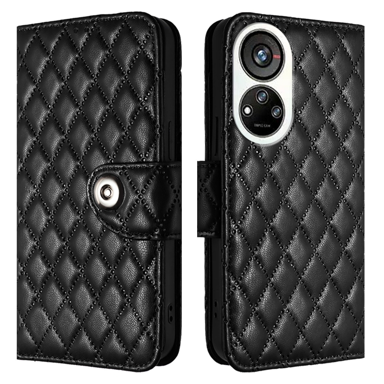 Funda de Cuero con Tapa y Textura Rombal para ZTE Blade V40S con Cordón (Negro)