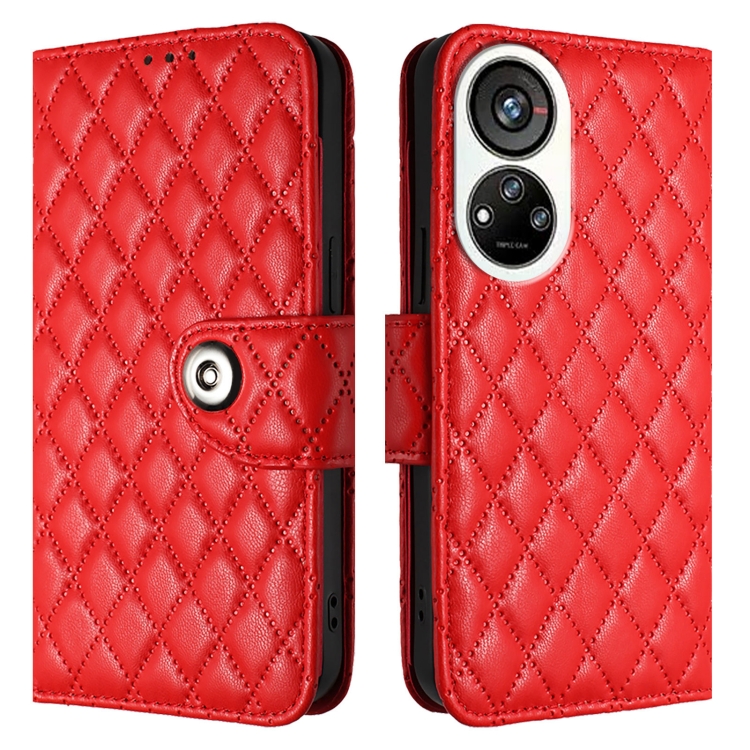 Funda de Cuero con Tapa y Textura Rombal para ZTE Blade V40S con Cordón (Rojo)