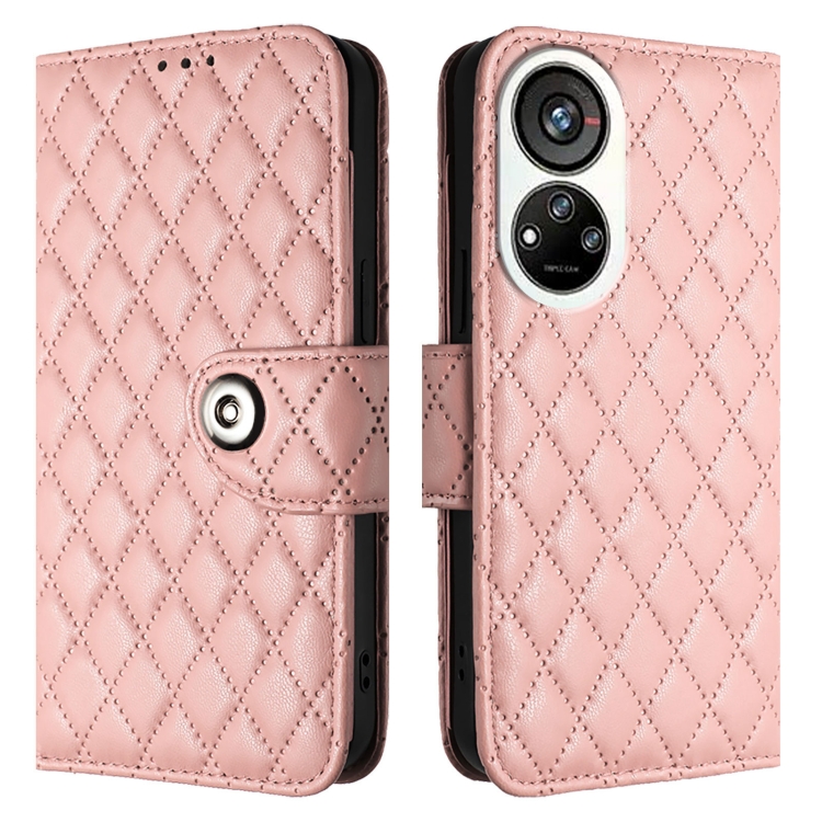 Funda de Cuero con Tapa y Textura Rombal para ZTE Blade V40S con Cordón (Rosa Coral)