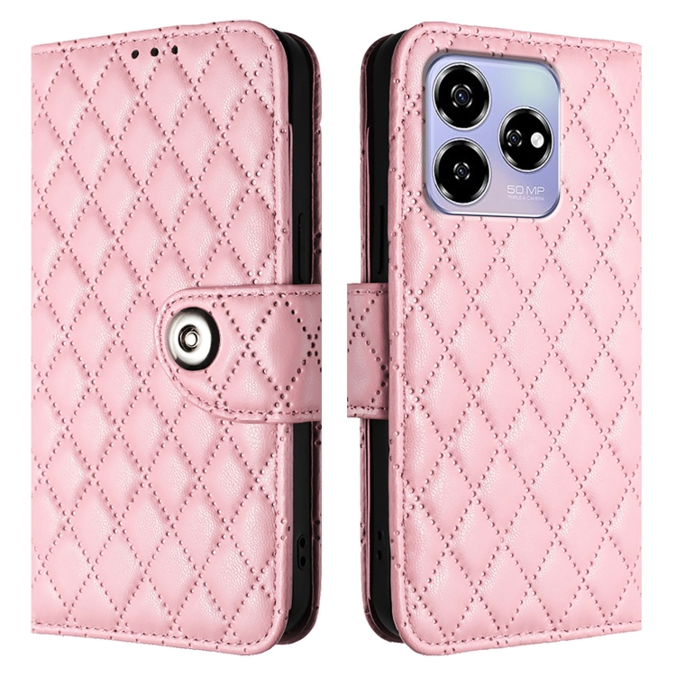 Funda de Cuero con Tapa y Textura Rombal para ZTE Blade V60/Axon 60 4G con Cordón (Rosa)