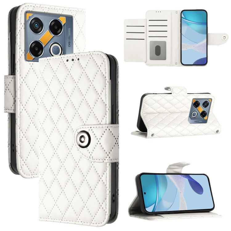 Funda de Cuero con Tapa y Textura Rómbica para Infinix Gt 20 Pro X6871 con Cordón (Blanco)