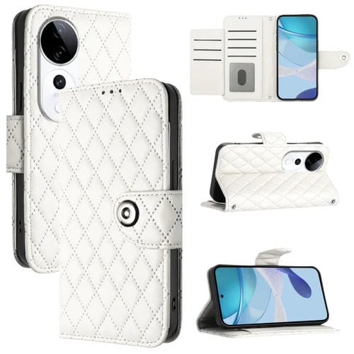 Funda de Cuero con Tapa y Textura Rómbica para Teléfono Vivo S19 Pro con Cordón (Blanco)