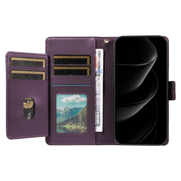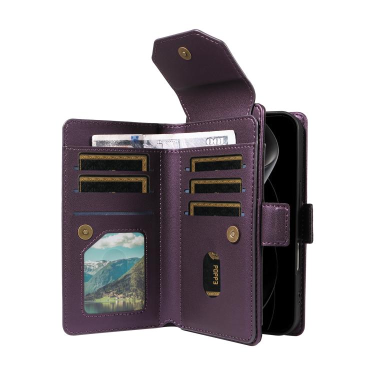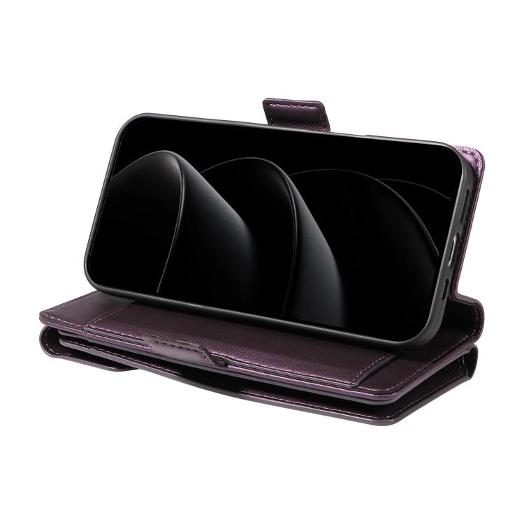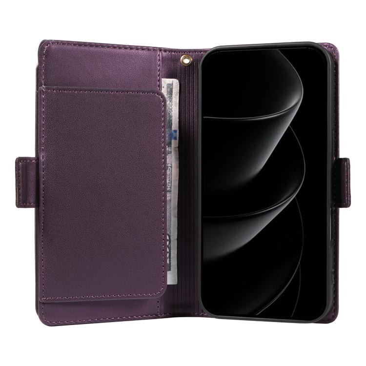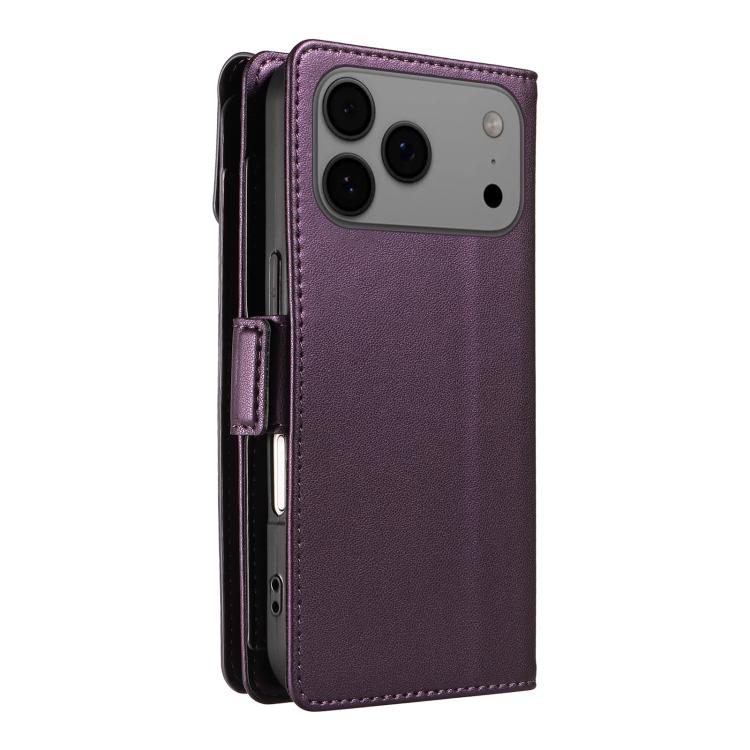 Funda de cuero con tarjetero para iPhone 17 Pro Max con correa (morado)